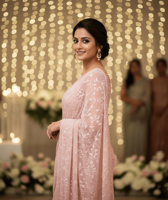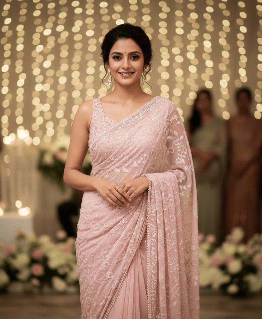 Blush Pink Chiffon Embroidered Saree