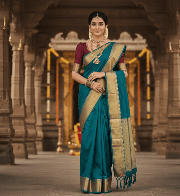 Blouse: Un-stitched matching fabric. Saree: With gota border.