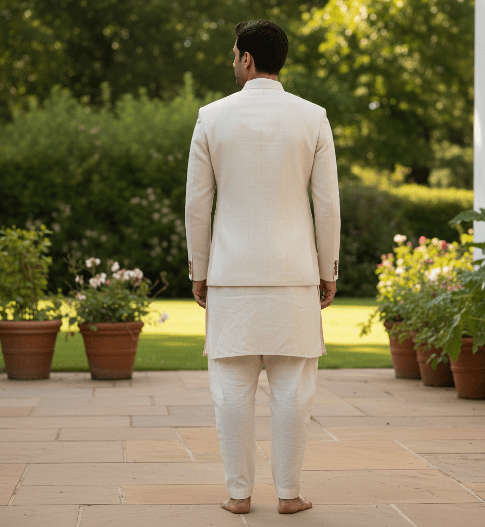 Cream Linen Nehru Jacket Suit