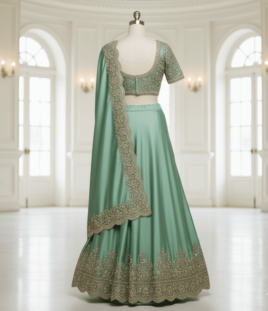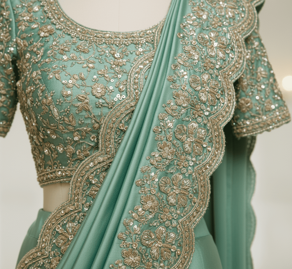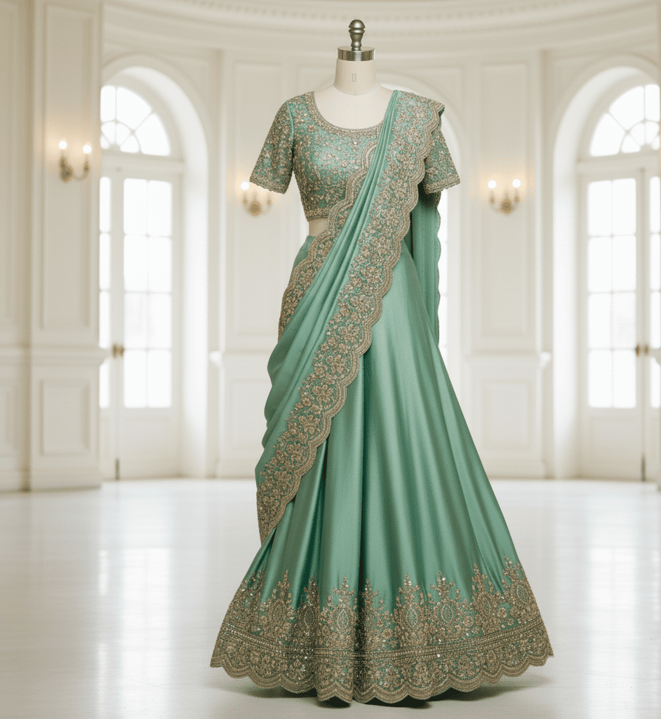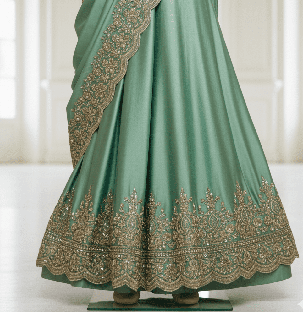 Emerald Green Satin Reception Saree