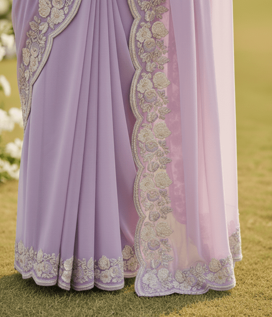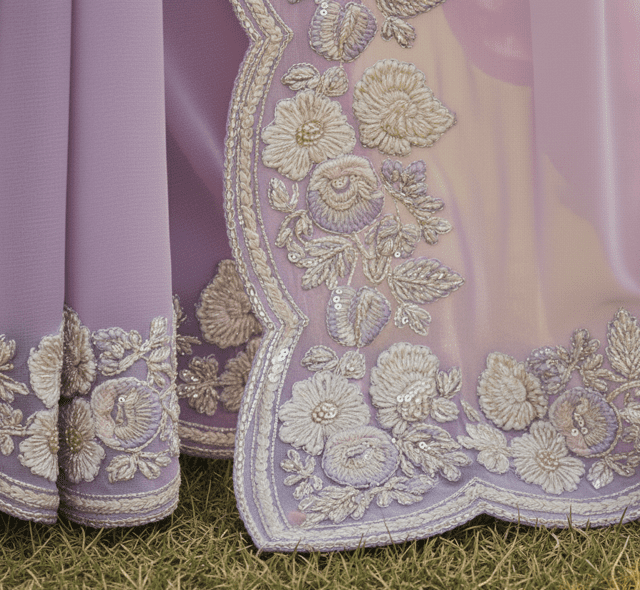Delicate lavender chiffon saree with embroidery.