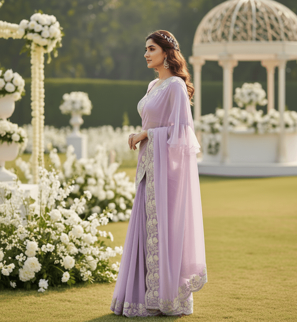 Lavender Chiffon Embroidered Guest Saree