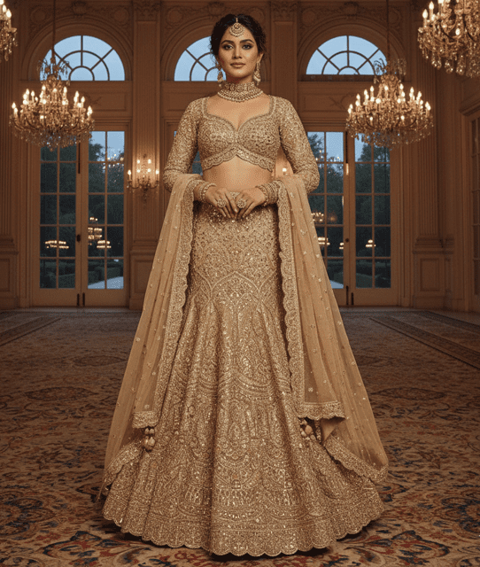 Jacket: Semi-stitched with button closure and structured shoulder. Lehenga: Semi-stitched with side zip (28-40 inches). This is a semi-stitched fabric set; images shown are 3D AI-generated visualizations of the finished style to demonstrate the intended look once custom-tailored to your measurements.
