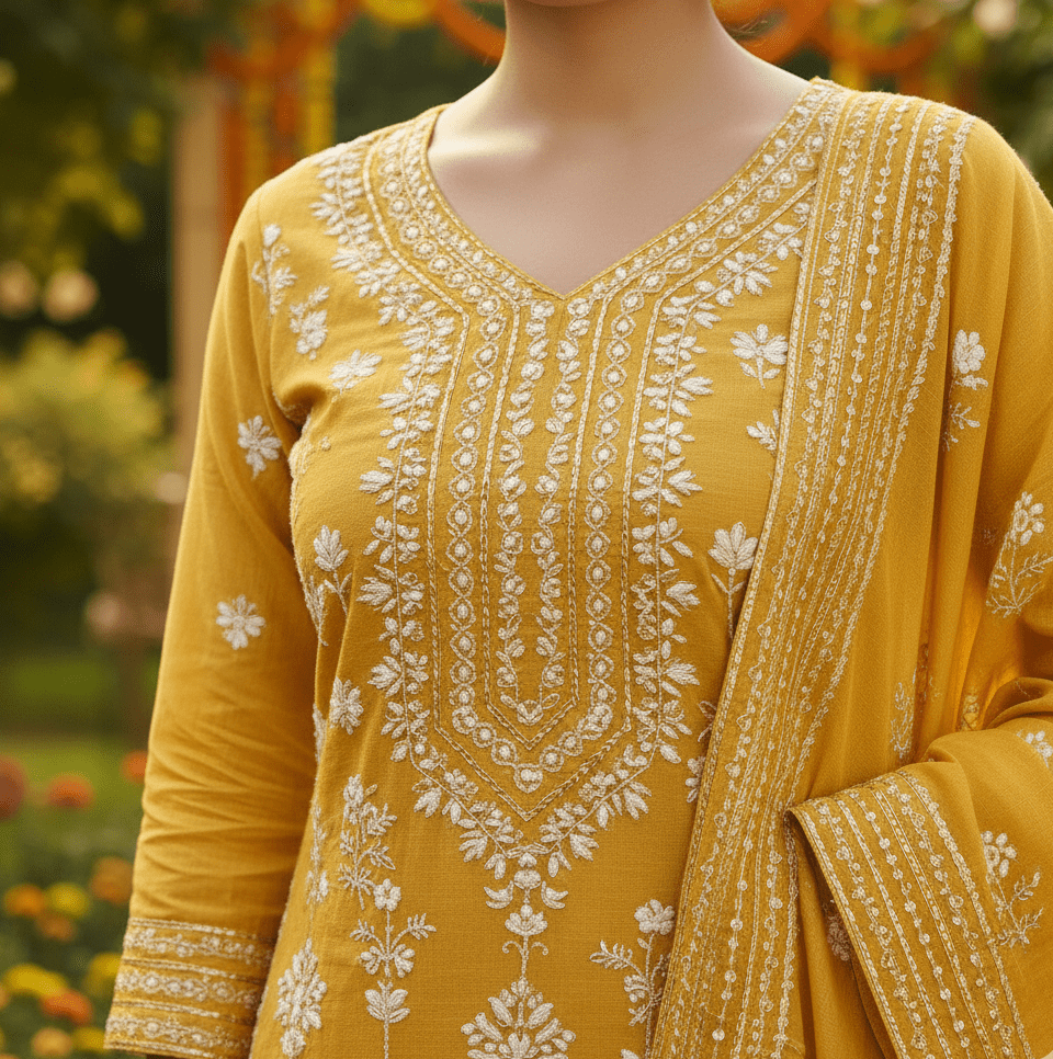 Mustard Embroidered Haldi Kurta Set – Women