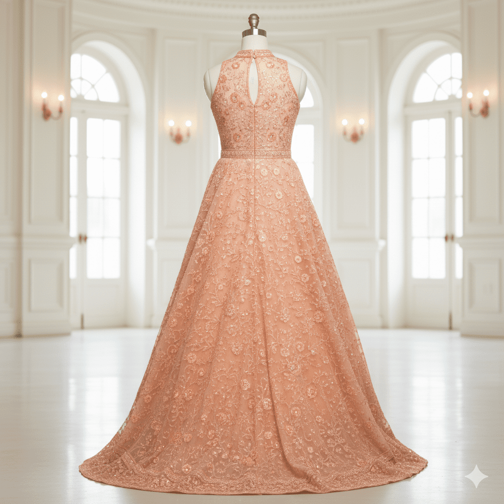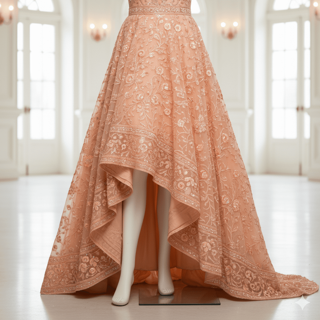 Be the first to review “Peach Asymmetric Indo-Western Gown”