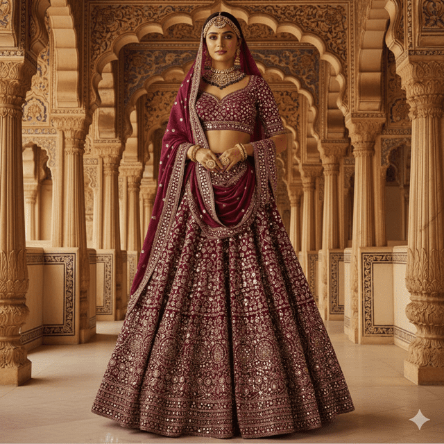 Fashion-forward teal blue georgette bridal lehenga featuring attached embroidered cape for dramatic entrance. Features georgette lehenga with pleated skirt, halter-neck blouse, and floor-length embroidered cape attached to blouse. Material: Premium georgette with satin lining. Embroidery: Zari, sequins, and mirror work. Weight: 4.6 kg. Color: Teal blue with silver embroidery. Blouse: Stitched halter-neck with cape attachment. Lehenga: Semi-stitched (28-40 inches). Cape: Attached floor-length. Care: Professional dry clean. Occasion: Ideal for grand reception, cocktail parties, statement brides. Fashioane cape collection.