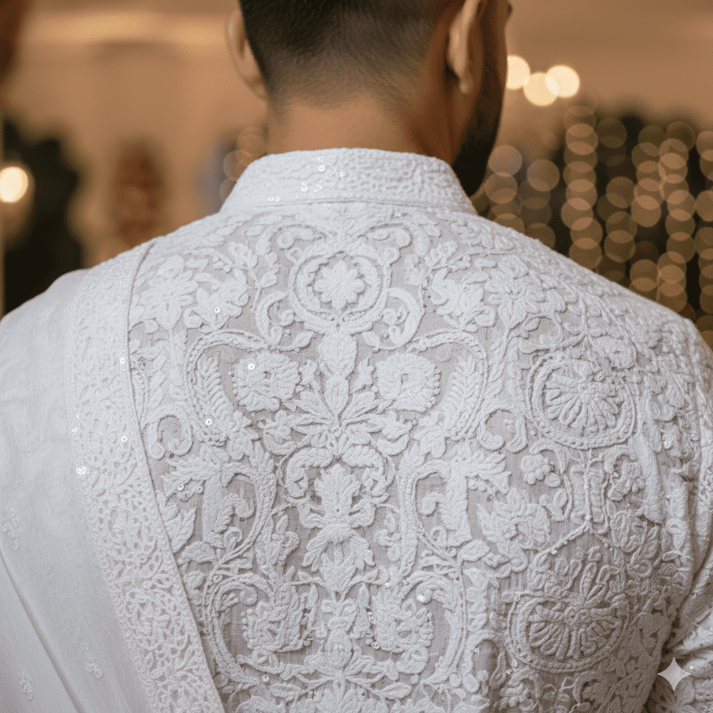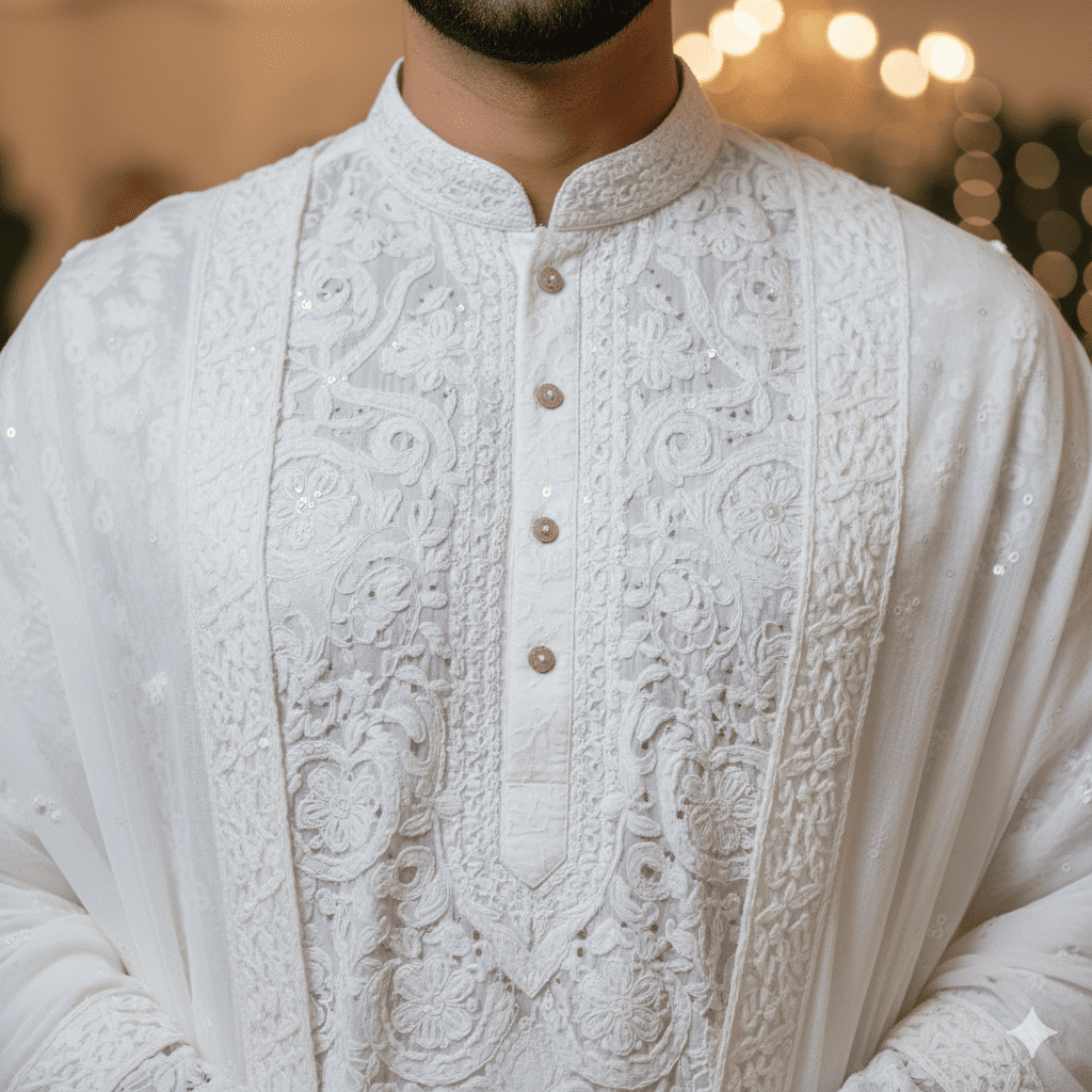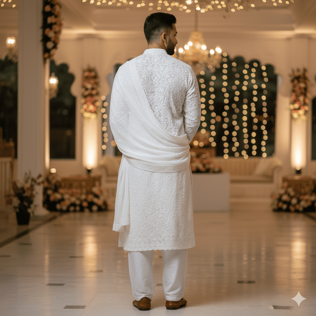 White Chikankari Engagement Kurta Set